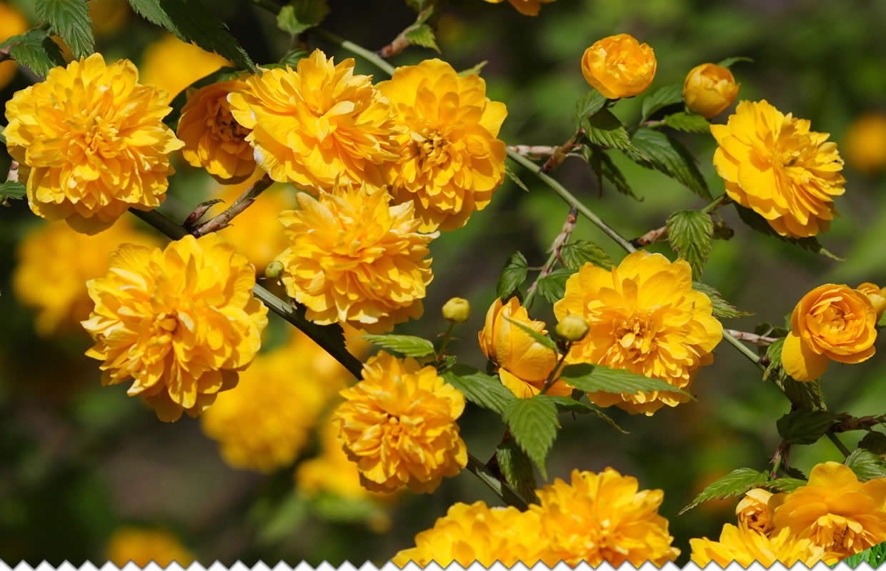 Gestes techniques :La corète du Japon tolère bien la taille. Taillez après la floraison pour maintenir la forme souhaitée.