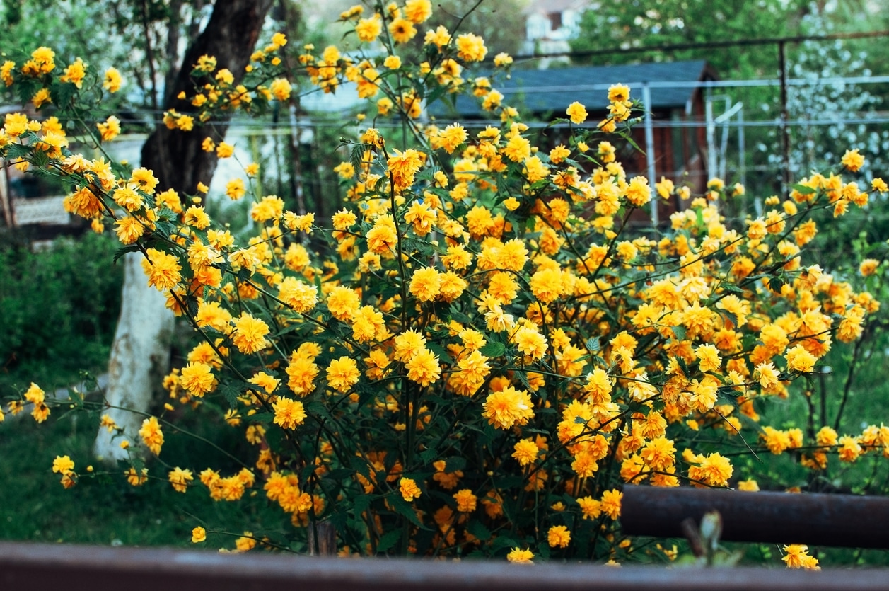 Kerria japonica, également connue sous le nom de corète du Japon, est un arbuste à feuilles caduques de la famille des Rosacées.