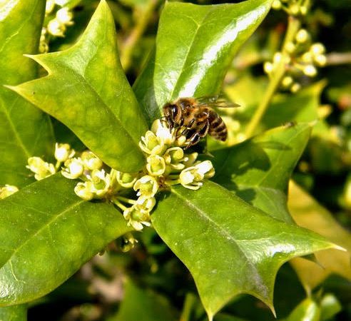 Bien que le houx ne soit pas principalement cultivé pour son nectar, ses petites fleurs blanches, discrètes mais parfumées, attirent tout de même les abeilles lors de leur floraison printanière. Ces fleurs offrent un peu de nourriture aux abeilles au début de la saison, lorsque d’autres sources de nectar sont rares.